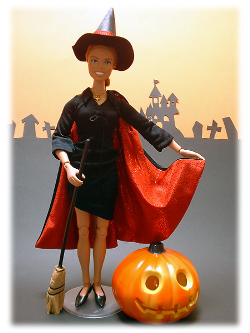 帽子、服、ペンダント、ほうきは「バービー」のものですが、さすがにハイヒールはサイズが合わなかったので、