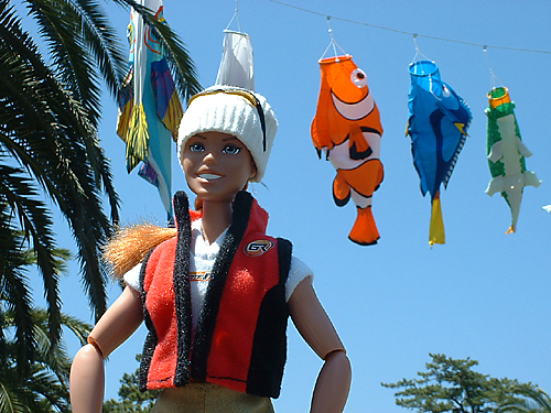 ![]() 静岡の清水・三保にある東海大学海洋科学博物館の入口に 展示中の「ファインディング・ニモ」の「コイのぼり」…ならぬ「ニモのぼり」を見に行って来ました! ここは深さ6m、奥行き幅ともに10m、全面アクリルガラスの海洋水槽があることで有名な水族館なんですが、 今年の初めから映画の公開に合わせて「本物のニモに会おうキャンペーン」を行っていたんですよね。 その関係かどうかわかりませんが今回登場したのが「鯉のぼり」ならぬ「ニモのぼり」! 大空を他の魚や恐竜(隣接に「恐竜博物館」もあるので!)と舞うニモたちはとっても気持ち良さそうでした。 写真の右から「恐竜」「ドリー」「ニモ」の順で上がっています。 しかし…熱帯魚の鯉のぼりだけでも斬新なのに、恐竜って…??? 4つ足の鯉のぼりって…ありだったのね…。(笑)