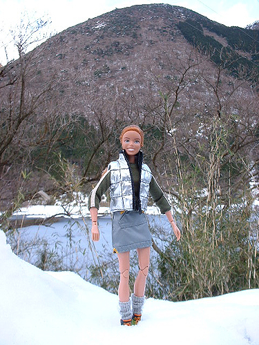 あたりには、月曜日(12月9日)に降った雪がまだたくさん残っていて、美しい景色を堪能しました!! 「お玉が池」で車を降りて記念写真を撮りましたが、こんな格好で来たから寒かったです。 でも雪は初めてだったので興奮しちゃいました。